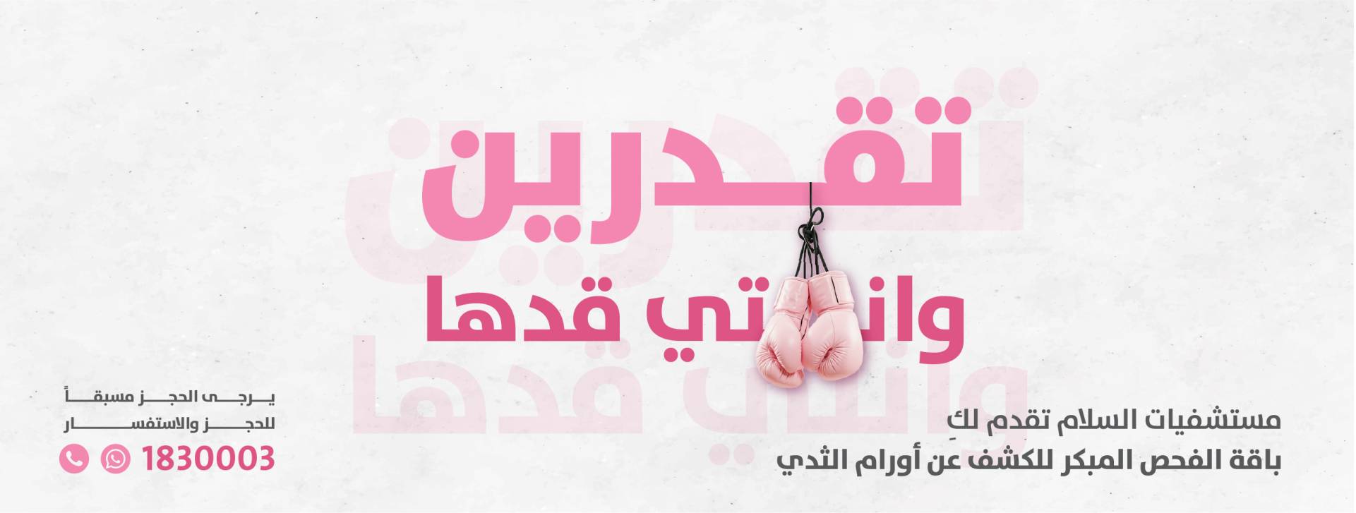 واعترافاً منا بأهمية التوعية، نقدم لكم خلال شهر أكتوبر باقة خاصة من الخدمات والفحوصات المبكرة للكشف عن سرطان الثدي، وذلك في إطار التزامنا بالصحة والوقاية ودعم التعافي المبكر.